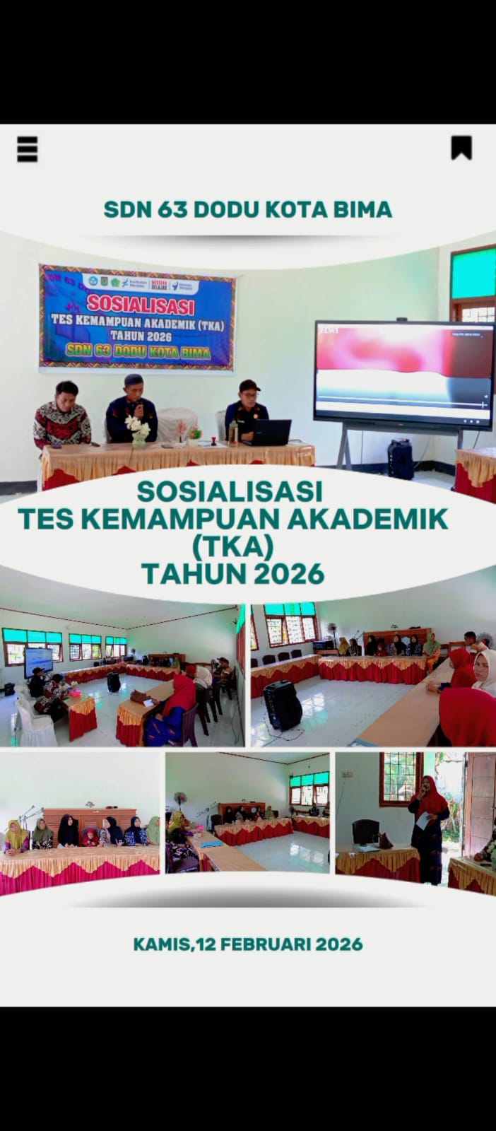 Sosialisasi yang digelar pada hari Kamis, 12 Februari 2026 di ruangan TIK SDN 63 Dodu Kota Bima tersebut dihadiri secara antusias oleh para wali murid. Dalam acara itu,pihak sekolah memaparkan secara detail tujuan, mekanisme, dan kisi-kisi materi TKA. Orang tua diajak untuk memahami bahwa hasil TKA bukanlah akhir dari segala penilaian, tetapi sebuah alat diagnostik untuk mengidentifikasi kekuatan dan area perbaikan dalam pemahaman siswa. Melalui dialog interaktif, berbagai pertanyaan dan kekhawatiran orang tua dapat dijawab secara langsung, menciptakan transparansi dan kepercayaan.
